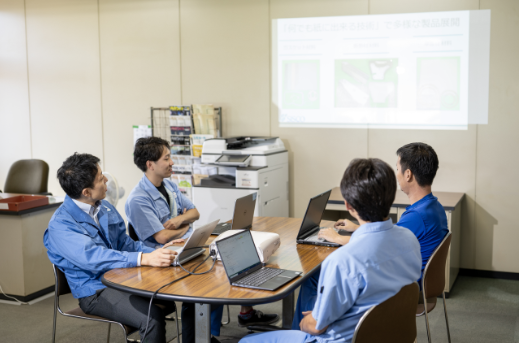 社員全員がそれぞれの役割を全うし、同じ目標に向かって切磋琢磨しております。